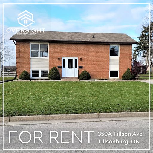 2 Bedroom Apartment with Shed!! 1 Bathroom 2 Bedroom$1850/month plus utilitiesClean and bright 2 bedroom raised apartment for rent on the north side of Tillsonburg! This 1100sq/ft apartment features a common entrance, hard floors throughout, spacious deck, and a shared shed with separate entrances. The large yard is shared with the lawn care being taken care of by the owner. Each unit has separate driveways and utilities.Apply online at oversightpm.Looking to build your credit? We offer rent reporting to make your rent payments work for you!