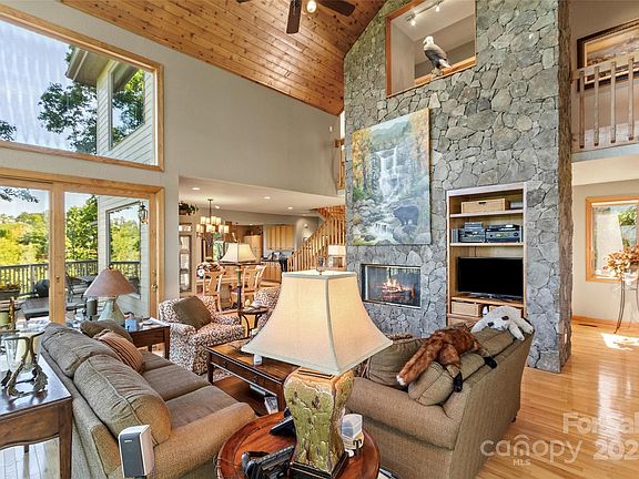 Privately situated at the end of Ball Camp Road in the prestigious MOUNTAIR AIR community, this stunning custom home offers more than 5,000 square feet of luxurious living space—perfect for hosting family and friends while enjoying complete serenity and privacy. The heart of the home is the spacious great room, featuring soaring two-story ceilings, floor-to-ceiling windows that flood the space with natural light, and a striking stone fireplace with custom built-ins. Gorgeous hardwood floors run throughout the home, enhancing its warmth and elegance. On the main level, you’ll find two generously sized guest suites, each with its own private bath, along with a convenient half bath for guests. The upper level is home to the primary suite, a true retreat with vaulted knotty pine ceilings and trim, a gas log fireplace, motorized blinds, and a luxurious en suite bath with a whirlpool tub. Also upstairs are a private office and an exercise room, both offering beautiful mountain views. Each of the home’s three levels features a gas log fireplace operated by remote control, adding comfort and charm. The lower level is designed for entertainment and relaxation, offering a large recreation room with a wet bar/mini kitchen, a playroom or game room, and an additional guest bedroom with full bath. This home is as functional as it is beautiful, with a Navien On-Demand water heater, a whole-house generator, and three separate HVAC systems—one for each floor—for optimal climate control. A two-car garage and a separate cart barn provide ample storage and house two golf carts, which are included in the sale. The beautiful grand piano in the main living area is also included. The seller will consider including a full golf membership, valued at $95,000, with an acceptable offer. A full-price offer will automatically include this exclusive full golf membership, providing access to the world-class golf and amenities at Mountain Air.