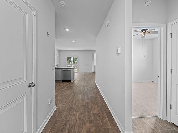Welcome to The Meridian at Cane Bay Plantation, where amenities include a pool, clubhouse with fire pit, trails, park, and access to the 300-acre Lakes of Cane Bay. Just minutes from Publix, dining, YMCA, and schools. This 2021 single-story home offers 3 bedrooms, 2 baths, and a private fenced lot with wooded buffer. Inside, high ceilings and an open floor plan create a spacious feel. Two guest rooms and a shared bath sit at the front, while the kitchen connects to the living area and laundry with bonus storage. The private primary suite features a walk-in closet and ensuite bath, making this home both functional and inviting. Property being sold in ''AS IS'' condition.