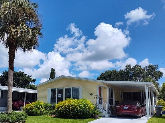 SPACIOUS PERIMETER LOT IN HIGHLY SOUGHT-OUT 55+ GATED COMMUNITY OF HERON CAY in Vero Beach, FL! 1456 sq. ft. 2-bedroom 2-bath. Lot rent is $1081 per month and includes the use of the park's wonderful amenities and basic lawn service. Amenities include a gorgeous pool, fitness center, and billiards, to name a few. THIS HOME HAS TONS OF SPACE! Being sold partially furnished. BOASTING NEWER A/C - 2023 AND NEW WATER HEATER 2025, and UPDATED FLOORING THROUGHOUT MOST OF THE HOME! This home sits on a well-maintained perimeter lot and has plenty of privacy. The driveway is large enough to fit 3 vehicles! The lovely screened-in LANAI leads to a spacious shed with two entrances. Relax in the large living room in the front of the house, boasting a vaulted ceiling and plenty of built-in storage that creates grandeur. THE KITCHEN IS HUGE!! Equipped with a large pantry, built-in storage, a large island, and tons of counter space! INDOOR LAUNDRY makes daily chores a breeze! The Jack and Jill style bathroom that has access to the laundry/kitchen area or guest bedroom. The expansive master suite comes with a large walk-in closet, while the ensuite has a soaking tub, double vanity, and walk-in shower for your rejuvenation. THIS HOME IS PERFECT FOR YOU! Be at the beach with TOES IN SAND IN 15 MINS! Located in Vero Beach, Florida. Just minutes from I-95 and most shopping needs. Contact today to schedule a showing or make an offer! All listing information is deemed reliable but not guaranteed and should be independently verified through personal inspection by appropriate professionals. Our company does not and cannot guarantee or warrant the accuracy of this information or condition of this property. Measurements are approximate. The buyer assumes full responsibility for obtaining all current rates of lot rent, fees, and pass-on costs. Additionally, the buyer is responsible for obtaining all rules, regulations, pet policies, etc., associated with the community, park, or home from the community/park manager. Our company is not responsible for quoting said fees or policies.