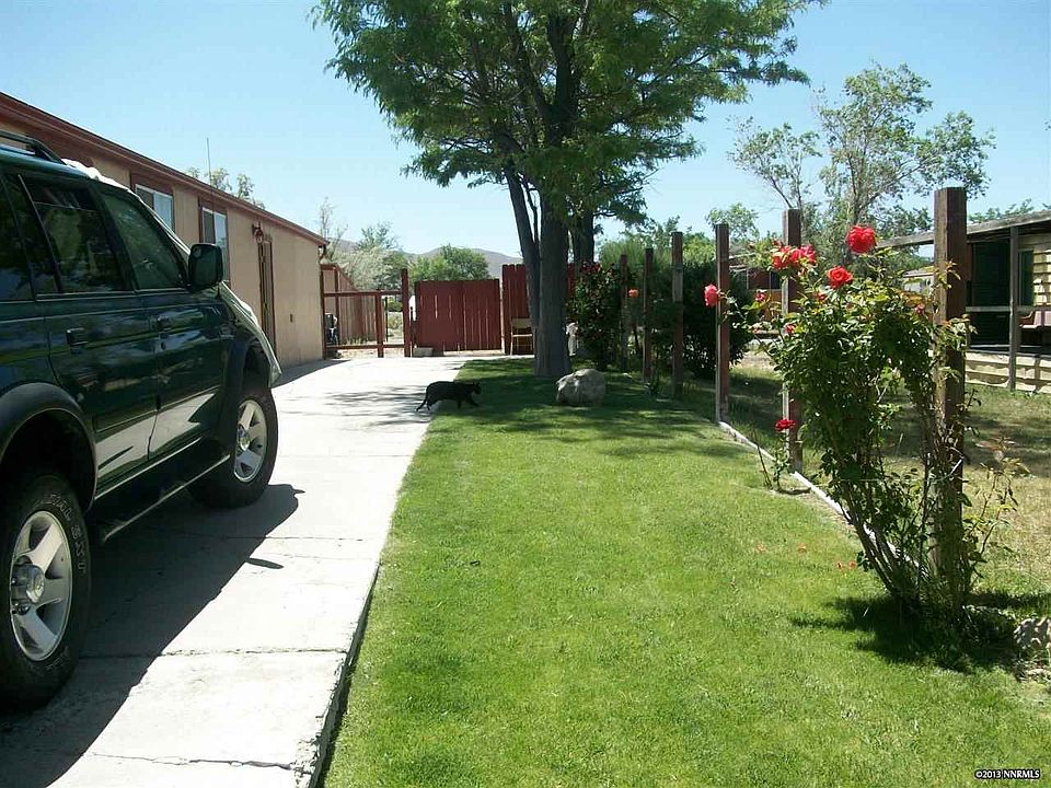 Spacious ! Well maintained home, with 4 bedrooms, 2 bath , 1848 Sq. ft. of living space. 1 car garage, fully landscaped and fully fenced with lots of flowers, patio off master bedroom , 3 storage units, kennel, 2 entrances. RV Parking. Across from common area, additional parking. See Private Remarks !!