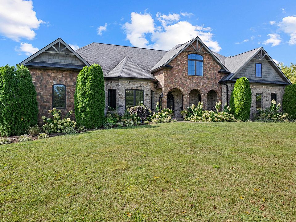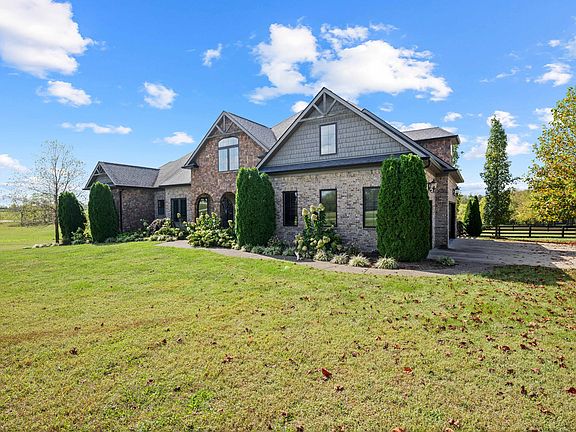 **OPEN HOUSE Sunday, October 13th, 1-4pm** If ever there were a property that must be seen in person to be believed, this is it. Built in 2015 and situated on a beautiful five acre lot in the exclusive Cave Run Estates community, this spellbinding custom home wows at every turn throughout its 6500+ square feet. No expense was spared in its construction, yet it overflows with an approachable luxury that makes everyone who enters feel right at home. Step through the impressive iron front doors and you'll immediately notice the hand-scraped hardwood flooring that flows throughout the main level. To the left- a bright and airy home office through French doors. In front of you are unique architectural arches inviting you into the heart of the home-- the open living room, stunning chef's kitchen, and sunlit eat-in dining room. The living room features volume ceilings adorned with solid wood beams, as well as a stacked stone linear fireplace surrounded by floating shelves and custom cabinetry. The kitchen is dreamy from top to bottom, highlighted by a waterfall island, an abundance of custom cabinet storage, a walk-in pantry, and a top-of-the-line Bertazzoni gas range and hood. The primary suite is truly a spa-like retreat you'll never want to leave! The spacious bedroom boasts a beautiful tray ceiling, coffee bar, and access to the covered back deck. Spend mornings getting ready in the luxurious bathroom with freestanding soaker tub and a shower that features a rain head and three wall jets. And you'll love the convenience of your own private laundry entry, right next to the huge walk-in closet. A guest half bath and mudroom area complete the first floor layout. Head upstairs and you'll find three spacious bedrooms, two connected by a jack-and-jill bath. There are also two hidden bonus areas for the kids to enjoy. A third full bathroom is perfect for guests, and a second laundry room on this floor means you'll never have to carry clothes downstairs! The expansive finished basement is made for entertainment and enjoyment, centered around a fully functioning wet bar/kitchen built from local barn wood and stone. You'll also find a designated workout room, a large office/flex space, a fifth bedroom with egress window, and a stylishly appointed bathroom with jetted tub and separate tiled shower. Don't miss the storm shelter area for peace of mind! Just when you thought the house couldn't get any more desirable, there's a massive covered deck awaiting family cookouts and s'mores on cool fall evenings. It overlooks a farm-fenced back yard (with invisible fence around the whole house for the dogs), which is easy to mow thanks to the basement garage for your zero-turn or tractor. There are SO many more amenities too numerous to list (central vac, wood Levelor blinds, etc), so you'll just have to come see them for yourself. Better hurry-- properties this special don't last long. Schedule a private tour today!