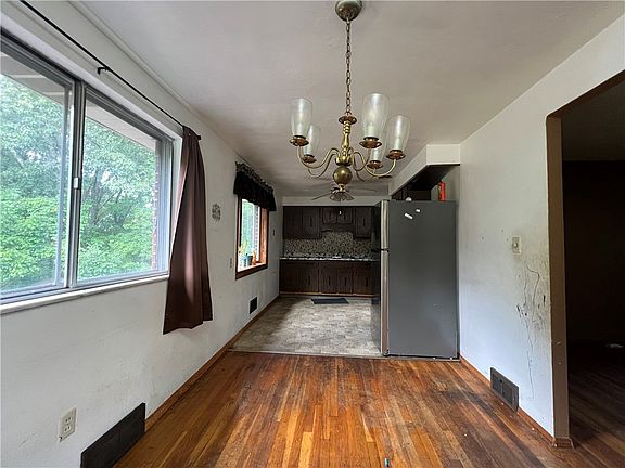 Discover charm and potential in this inviting all-brick ranch home featuring 3 bedrooms and 1.5 baths, awaiting its next discerning owner. Upon entering, sunlight streams through a large bay window, casting a warm glow over the living room anchored by a stoned gas fireplace—a perfect spot for cozy gatherings. The flowing floor plan showcases hardwood floors throughout, leading to an open dining and kitchen area with yet another bay window framing views of the wooded lot, creating a tranquil backdrop. Entertain or unwind in the expansive basement game room, complete with access to a rear three-season sunroom, ideal for enjoying the serene surroundings in any weather. Additional highlights include a furnace updated in 2017, a new hot water heater in 2024, a basement workshop, an extra-long integral garage with storage space, and approximately half an acre of mostly wooded land. Conveniently located with quick access to Rt 30, this home offers both accessibility and privacy.