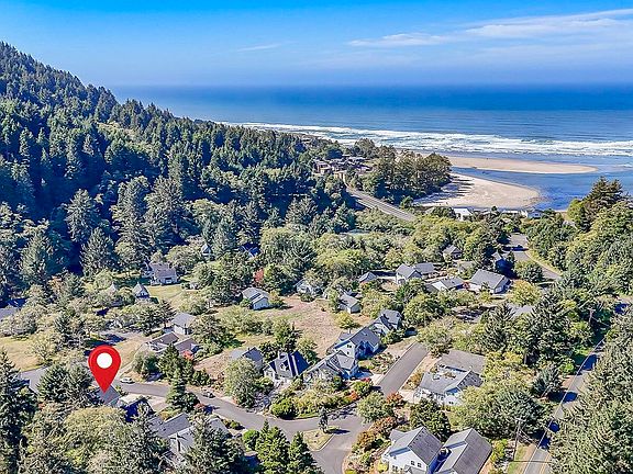 Upstairs, a spacious bonus room with vaulted ceilings includes a second kitchenette—perfect for guests or extended stays. You'll also find a bedroom with full bath, an office that can double as a third bedroom, and a playful loft for storage or overflow sleeping. Outdoors, enjoy a generous deck, whimsical treehouse (cont'd) and a landscaped yard that gently slopes to the river, complete with fruit trees and blueberries. A kayak/paddleboard launch is just steps away, and beach access is nearby. Included are three refrigerators (kitchen, kitchenette, and garage) and a washer/dryer. Enjoy access to Quiet Water HOA amenities like a seasonal pool, hot tub, and tennis court. Just minutes from downtown Yachats, this home offers a perfect mix of serenity and convenience in one of the coast's most charming communities.
