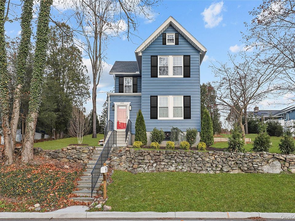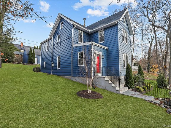 Step into a beautifully renovated home where modern sophistication and classic charm create an unforgettable first impression, enhanced by its striking blue exterior paired with timeless black shutters (install soon). A large foyer welcomes you in, setting the tone for the thoughtfully updated interior. The dining room is perfectly situated adjacent to the living room, creating an inviting, open flow ideal for everyday living and entertaining. The elegantly updated, generously sized kitchen features modern finishes, a gas stove, and French doors that open to the patio and beautifully landscaped yard. The second floor offers three bedrooms with a stylish updated full bathroom, enhanced by two additional double closets in the hallway and beautiful knotty pine flooring that adds warm rustic charm throughout. With the interior perfectly appointed, step outside to the elegant bluestone patio with lush landscaping—an ideal backdrop for entertaining or unwinding. The exterior also features a separate one-car garage with an adjacent barn, a long driveway for ample parking, and the unique benefit of frontage on two roads, providing additional convenience and versatility. A rare opportunity to own a truly turnkey property just moments from the train—an easy walk for commuters, offering unmatched convenience. Situated in sought-after Hawthorne, residents enjoy a warm community feel, excellent Mount Pleasant schools, easy Metro-North access, and close proximity to parks, dining, and major commuter routes—making it one of Westchester’s most desirable places to call home.