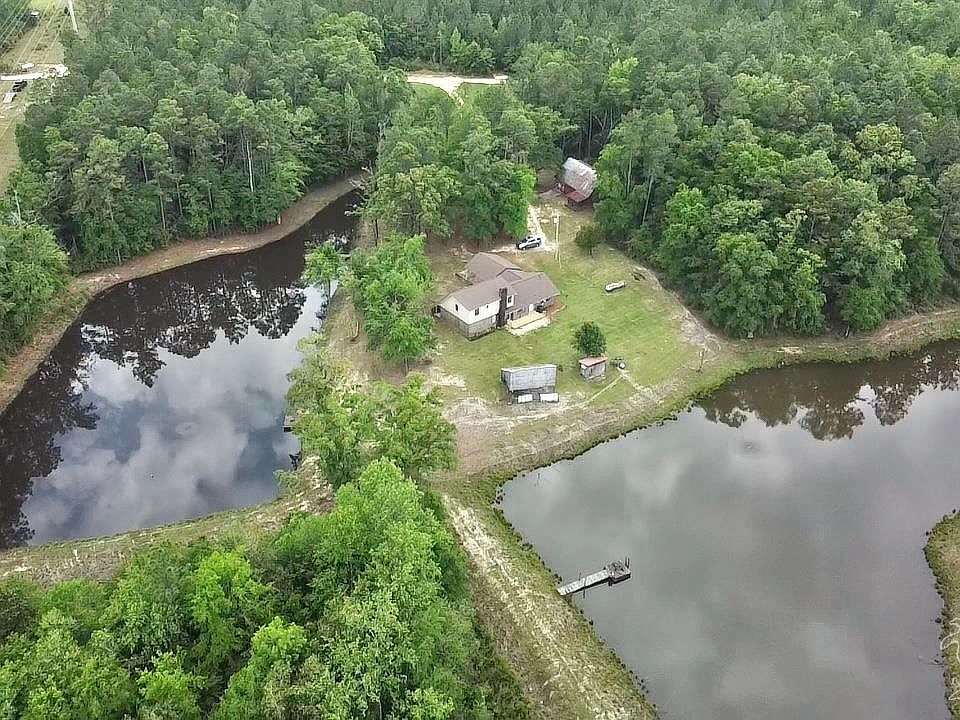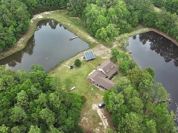 Discover your own private retreat on this stunning 50+/- acre estate, beautifully wooded and featuring two picturesque stocked lakes. The charming home offers 3 spacious bedrooms and 3 baths within an open-concept floor plan highlighted by a cozy fireplace. Additional living space has been thoughtfully created by converting the garage, but it can easily be returned to its original use. Enjoy relaxing mornings on the front porch or unwind in the evenings on the back deck overlooking serene lake views. The expansive barn provides ample storage and, with some work, can be transformed into a guest suite for visitors. Complete with an attached double carport, this peaceful and private property is the ideal sanctuary to call home. ALL SQ. FOOTAGE & DIMENSIONS ARE APPROXIMATE AND IS THE BUYER'S RESPONSIBILITY TO VERIFY DURING DUE DILIGENCE PERIOD