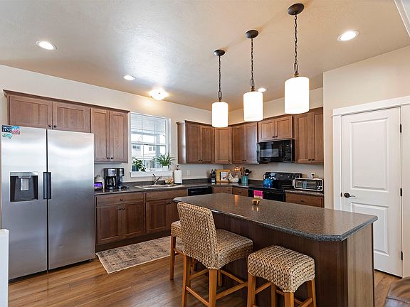 Nestled in a peaceful cul-de-sac in a newly developed neighborhood near the high school, this stunning 4-bedroom, 2 1/2-bath home offers both comfort and style. The main floor is designed with an open-concept layout, featuring soaring ceilings and a spacious kitchen, dining area, family room, and versatile office/bonus space. Upstairs, you'll find all the bedrooms along with the conveniently located laundry room. The expansive master suite includes an en-suite bathroom and two walk-in closets, providing ample storage. The additional bedrooms also offer high ceilings and walk-in closets for added convenience. Outside, the fully fenced and beautifully landscaped backyard offers breathtaking views, complemented by a full-length covered porch, a charming gazebo, and underground sprinklers for easy maintenance. Don't miss out, this home is better than new! Call Ty Daniels at 406-802-8010 or your real estate professional for a showing. Seller would like to do rent back until June 15, 2025 if possible.