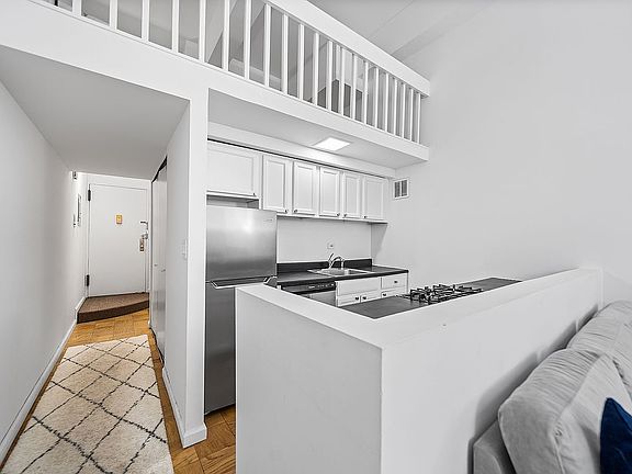Enter inside The Beekman, an iconic 1918 prewar loft condominium known for its dramatic iron-framed windows and classic architectural character. Residence 1M immediately impresses with soaring 13-foot ceilings, exposed beams, and oversized glass-and-iron picture windows that flood the home with northern light. The entry level opens with a proper foyer and a long gallery hallway that leads into a generously sized, square living room—an ideal layout for both relaxing and entertaining. The open kitchen features a cooking island, abundant counter space, and recently updated appliances, including a new refrigerator and dishwasher. This floor also includes a full bathroom, a well-designed closet, and a walk-in closet for excellent storage. A wood staircase brings you to the lofted sleeping area overlooking the living space. Comfortable and efficient, it easily accommodates a queen-size bed with room for additional storage. The home is cooled by a powerful window A/C unit, while heat is provided by the building. The Beekman offers full-time doorman service, a live-in super, laundry on the 2nd floor, and a pet-friendly policy. Centrally located near major transportation, Midtown shopping, Trader Joe’s, and Whole Foods, this chic duplex studio is perfect as a primary residence, pied-à-terre, or investment.