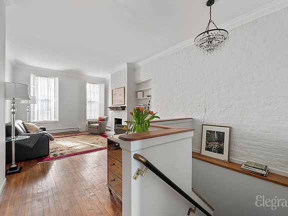 There are many special pre-war details throughout the apartment, including exposed brick, a working fireplace, nearly 10-foot ceilings, built-ins, and hardwood floors, just to name a few.