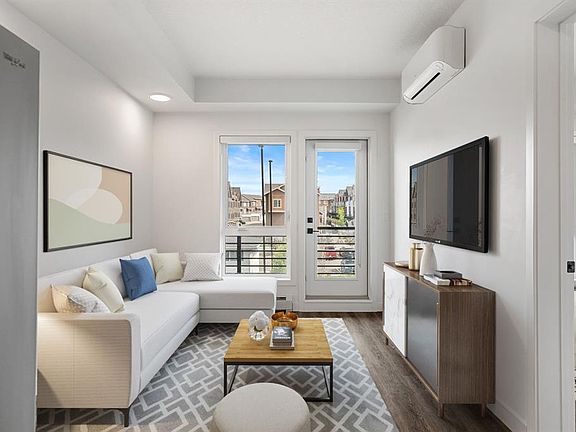Discover a beautifully appointed third-floor condo located in the desirable community of Livingston. Perfectly suited for first-time buyers, savvy investors, or those looking to downsize, this home offers modern finishes, smart design, and incredible convenience — all at an affordable price point. Step inside to discover an open-concept layout that maximizes space and natural light. The kitchen is thoughtfully designed with quartz countertops, sleek full-height cabinetry with soft-close doors, and stainless steel Whirlpool appliances, making it both functional and stylish. The living and dining area flows seamlessly onto a generous west-facing balcony, that includes a built-in gas line for BBQs — an inviting space for entertaining or simply enjoying sunsets. The spacious primary bedroom features a walk-in closet and easy access to a modern 4-piece bathroom. Additional comforts include in-suite laundry and central air conditioning, keeping you cool and comfortable throughout the year. The unit also comes with a titled underground heated parking stall and an assigned storage locker, offering peace of mind and extra convenience. The building itself is well-maintained, featuring elevator access, a welcoming lobby with modern décor, and secure common areas. This pet-friendly building is ideal for animal lovers, featuring its very own dog run — a rare and welcome amenity that adds to the lifestyle appeal. Livingston doesn’t just offer a home — it delivers a lifestyle. Anchoring the community is the Livingston Hub, a 35,000 sq. ft. facility under the homeowners’ association, where neighbours gather for year-round engagement. Inside, enjoy banquet and meeting/multi-use rooms, a commercial kitchen, gymnasium, café space, meeting rooms and childcare/day care space. Outdoors, the Hub’s park includes skating rinks (both leisure and hockey), tennis courts, enhanced playgrounds, splash parks, an amphitheatre, ping pong tables, gathering spaces, and fire pits with BBQs for summer enjoyment. Programming and events are hosted throughout the year, from festivals and family movie-nights to fitness and wellness classes all within walking distance. Located just minutes from Stoney Trail, this home offers easy access to downtown, the airport, and nearby shopping centres. The growing Livingston community is one of Calgary’s most exciting new developments, offering parks, pathways, playgrounds, and the upcoming Green Line LRT expansion. Whether you're looking to get into the market, add to your investment portfolio, or simplify your lifestyle, this move-in-ready unit checks all the boxes. Affordable condo fees and strong rental appeal make it a smart choice for any buyer. Don’t miss out — book your private viewing today and see the value this exceptional property has to offer!