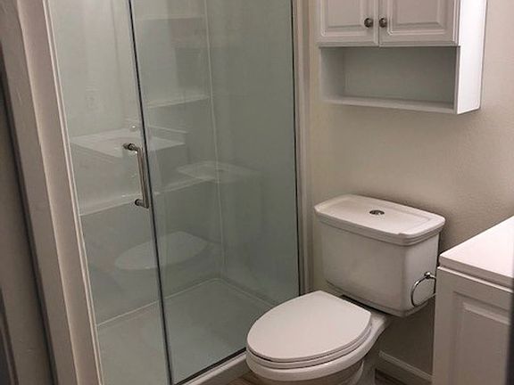 This is a downstairs remodeled junior one bedroom. It features all new wood look ceramic tile floor and newer cabinets and appliances. It is a cute and cozy apartment.