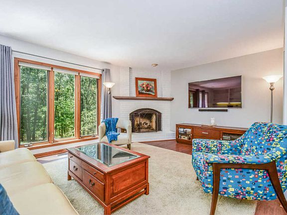 NEW PRICE, NEW KITCHEN, NEW PAINT AND NEW CARPET. Acreage in Ada with easy access to bike paths taking you to Siedman Park and newly renovated Ada Village. This 5-6 bedroom house has a main floor master suite with his/her's closets, 3 large bedrooms and a bath upstairs and 1-2 more bedrooms and full bath in the walk out lower level. The main floor offers a formal dining room, laundry, 1/2 bath & a living room that is open and bright with a fireplace, built-in in shelving/desk & wet bar. Thereis additional living space in the lower level with a fireplace and rooms for your hobbies and activities There is plenty of space in this yard for running around, exploring in the woods, fires in the fire pit and relaxing in the hot tub. Forest Hills Eastern School District.