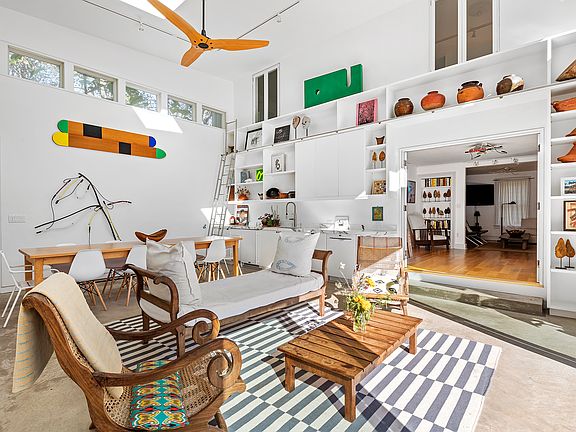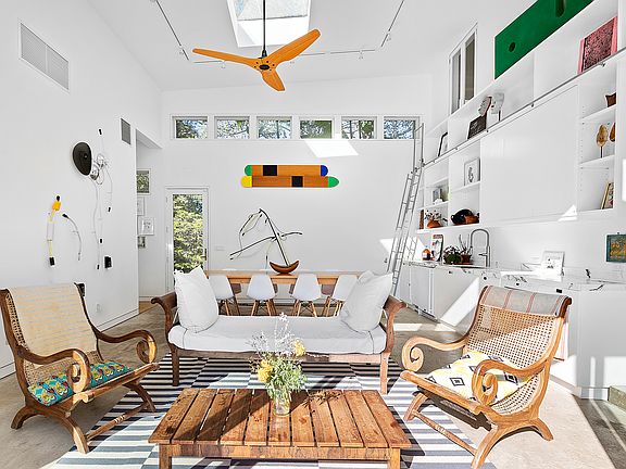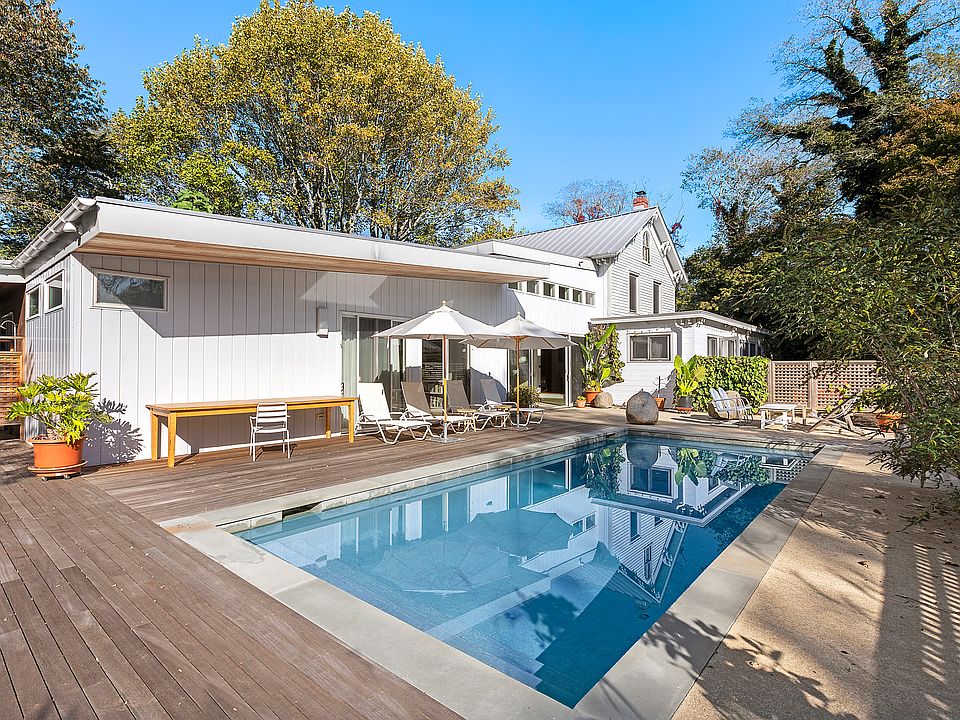 Located south-of-the highway in Bridgehampton, just minutes from the village and ocean beaches, this shy 2-acre compound is truly one of a kind. A whimsical mix between traditional and modern, this secluded property is sure to delight your senses. The main house offers four bedrooms, three baths, a cozy den, office/library and two dining areas. The kitchen is spacious and well-equipped and opens to an outdoor patio with picnic table. Previously owned by a celebrated visual artist, the space offers one-of-a-kind art installations throughout and is ideal for entertaining. The large light-filled living/dining area offers high ceilings, an additional kitchenette, and indoor-outdoor access through large sliding glass doors. Also on the main level is the primary bedroom with a large walk-in closet, renovated bathroom, designated laundry area and access to an outdoor shower. Upstairs, the three bedrooms exude charm with wide planked floors and farmhouse details. Outdoors, enjoy all that summer has to offer with stunning mature landscaping, a heated gunite salt-water pool, an additional outdoor shower, and a vegetable garden. Beyond the pool is a modern studio with soaring ceilings, a sitting area with TV, half bath and bonus space. With such flexible and unique spaces, the possibilities are endless.