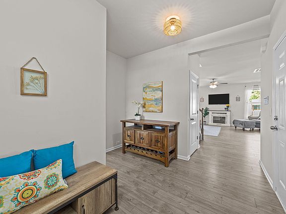 Welcome to this light-filled, open-concept home featuring a thoughtfully designed floorplan and modern finishes throughout. The heart of the home is the oversized kitchen, complete with a massive quartz island, stainless steel appliances, pantry, and ample cabinetry—perfect for everyday living and entertaining. A large dining area and eat-in kitchen island overlook the fully fenced backyard with a patio and serene views of the wooded natural area. Step inside to an inviting foyer with multiple storage closets and a convenient half bath. Enjoy the charm of a covered front porch and the ease of neutral paint tones throughout the home. Upstairs, you'll find four generously sized bedrooms, including a luxurious primary suite with a tray ceiling, a massive walk-in closet, and a spa-like bathroom featuring a walk-in shower, water closet, and beautiful tile finishes. The expansive laundry room adds to the home's functionality. Community amenities include a pool, clubhouse, fitness center, paved greenway, sidewalks, and more—all just minutes from everything the Town of Clayton has to offer.
