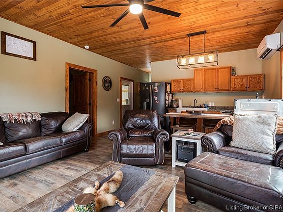 Private location only 10 minutes from I-64 Corydon exit. There is no home on this land-finished area in pole barn per planning and zoning is for office space and storage only. Nearly 20 acres that are wooded in the front and open and secluded in the rear prepped and ready for your new home. The electric, 3 bedroom septic and water are all in place, all you need is your building permit and a builder! Need a shop for your small business or for all your equipment? You're in luck top of the line 70 x 50 Pole building with 70 x 8 lean-too. Pole building has a finished 50 x 16 heated and cooled office area with 20 x 16 break room, wash room, bath and two private offices -office 1 is 16 x 12 & office two is 8 x 8. 70 x 50 pole building has concrete floors, four 10 x 10 overhead doors with garage door openers, also outside keypads, and one 12 x 12 slider. Two electric meters for a total of 440 - 220 amp service for the pole building and another 220 amp service stubbed up for your new house. But wait there's more..... as you come up the drive you'll notice the 24 x 12 covered deck area/shooting shelter. Yes! This is every hunters dream! There is also a smaller 30 x 24 pole barn. Once in a lifetime property - Lots of thought has went into every aspect of the planning for this setting. The hard work and $$ put into this will save a new owner time and $$.