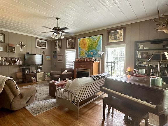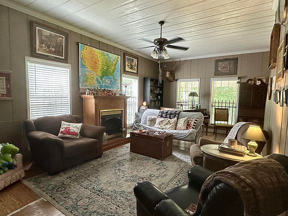 Spacious farmhouse home on 4 acres in the country! This 3 bed, 2.5 bath home features a large covered front porch, 9 ft ceilings down stairs, separate living room, eat in kitchen, large utility room, office/craft room, sunroom, 2 car garage, storm shelter, and outside storage. This home has lots of potential but does need some TLC and will not work with some type loans.