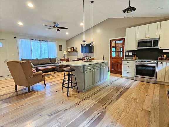 Welcome to your dream home situated on a level one acre in Center Twp. Upon entering you will love the open floor plan with cathedral ceilings. The kitchen offers plenty of cabinetry with kitchen island, quartz countertops and large pantry. This home features 3 bedrooms and 2 full baths and a wood burning stove. You'll also find hardwood floors, recessed lighting, a 3 season room that could be used as a dining room. The lower level has plenty of room for a family room. This home also features a two car garage and paved drive.