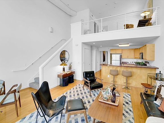 The ultimate urban luxury home welcomes you to your dream lifestyle. Penthouse Condo /loft combo with abundance of natural light and oversized balcony. Open floor plan with wall of windows in the living room showcase views overlooking the ever changing San Jose's skyline and mountains. Spacious kitchen includes ample storage space with unique wine color granite countertop, maple cabinets and stainless steel appliances. Private balcony extends your living space and allows fresh air flow! Beautiful log fireplace and 19ft ceilings!