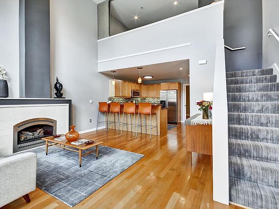 This elegant loft-style home combines the openness of modern loft living with the privacy of a traditional bedroom, a guest room or home office, and an additional open loft space. The home has a gourmet kitchen featuring granite countertops and honey-maple cabinets, complemented by wood floors, a wall of windows, and abundant natural light. An open floor plan with fresh paint and custom carpet flows seamlessly to a balcony overlooking the stunning pool and city views. This home perfectly balances urban living with a versatile design. Community amenities include a fitness center, pool, and spa. Gated entry and secure access provide peace of mind, along with an assigned, easily accessible parking space.