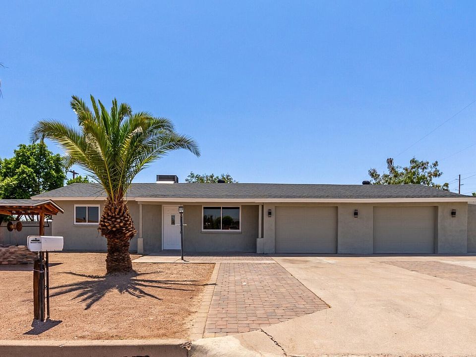 Newly remodeled, throughout, 4 bedroom, 2 bathroom home. Situated on an oversized corner lot featuring a 3 car garage with 2 single garage doors. Inside, wood-look vinyl flooring and ample windows provide an abundance of natural light. Open kitchen with new countertops, SS appliances and an eating nook. Retreat to the master suite with a bay window overlooking the backyard and a spa-like bathroom boasting a tile surround shower, new vanity and fixtures. Out back a spacious backyard with an extended patio, RV gate and separate storage. No NOA and conveniently located, just minutes to the Loop 202.