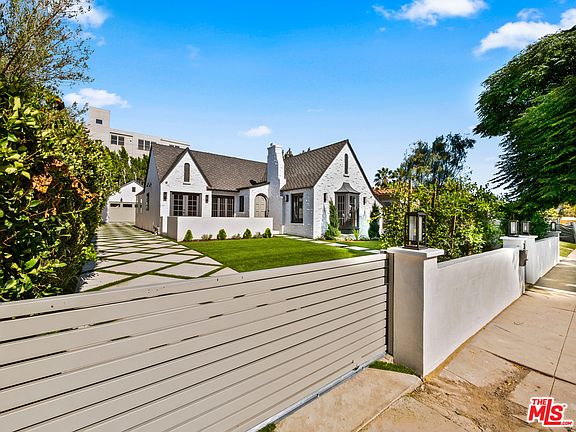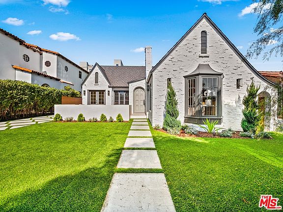 Gorgeously remodeled in 2019, this modern English Tudor is adorned with endless character and charm. Privately hedged and gated, this designer estate features clean, bright architectural details with soaring vaulted ceilings, white oak hardwood floors, wood burning fireplace, built- in wine racks, patio w/fire pit and LED recessed lighting. The dreamy open concept chef's kitchen includes a 9' over sized Carrara marble center island, Viking appliances and custom cabinetry. A luxurious master suite comes complete with pitched ceiling, custom walk-in closet, soaking tub, dual sinks/showers and french doors leading to the private, landscaped backyard. Additional features include Yamaha 6 zone audio system w/volume control throughout and wired 4 point HD camera system. With a high ceiling, skylights and built new in 2019, the multi use detached garage could be used as a studio/office/gym/movie theater or a transformation of your choice. The prime location is within walking distance to The Grove, West Third St and Melrose Ave. Located in close proximity to West Hollywood Design District, Cedars Sinai, Beverly Hills, shopping, dining, cafes and more.