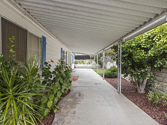 Opportunity to live the north county coastal lifestyle at a fraction of the cost. Green Valley Mobile Estates is a low density 55/45 park with only seventy-eight ground level (pitted) homes on hillside terraced parcels that provide excellent accessibility while giving sense of privacy and feel of conventional housing. This home affords end of street location with southerly orientation providing abundant sunlight throughout the day. Enjoy beautiful Encinitas weather in your large yard or covered patio area. Indoors the open great room floorpan seamlessly encompasses the kitchen, dining room, family and living rooms. Home offers full Free-Air-Gravity heating and air conditioning, newer copper plumbing, piers & pads, vapor barrier mesh, newer carpeting and more. Driveway easily handles two cars and golf cart if necessary. Common area pool, spa, clubhouse, library and gym included. Residents allowed two dogs that can be walked inside the park. Encinitas is a world class destination offering fantastic senior & community centers, miles of hiking/biking trails, local farmers markets, wide array of concert and theatre venues nearby, numerous golf courses within a ten mile span, award winning Ecke Family YMCA, access to unlimited shopping and dining experiences, top flight medical facilities and of course abundant shoreline beaches and surf. Space rent of $1,600 includes water, Spectrum basic cable package and high speed internet service. All appliances and most furniture can transfer to buyer.