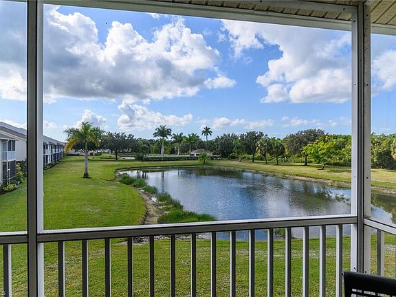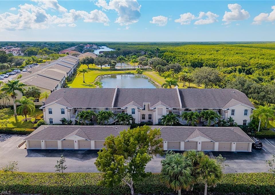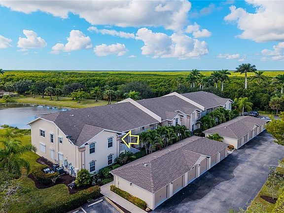 Welcome to effortless coastal living in the peaceful boating community of Port of the Islands. This turnkey, fully furnished 3-bedroom, 2-bath end-unit condo is move-in ready—all furniture, home furnishings and tasteful décor stay, making it ideal as a full-time residence, seasonal retreat, or investment property. The condo has been used lightly and very well maintained. Perched on the 2nd floor with no neighbors on one side, this light-filled home offers extra windows, vaulted ceilings, and beautiful views overlooking the sunset lakes and the surrounding wildlife preserve. Enjoy nightly golden skies and the tranquil sounds of nature right from your screened lanai. Inside, the kitchen features Corian countertops, a breakfast nook and seating at the counter. The primary suite includes a king bed, night stands and dresser with two closets and en-suite bath, while the guest bedroom is generously sized with a queen bed, night stands, dresser and large closet. The 3rd bedroom is set up as a flexible guest/office space, complete with a sofa bed and armoire perfect for an office or tv. You’ll appreciate the in-unit washer/dryer and large closets throughout, providing abundant storage. Additional conveniences include electric hurricane shutters and a new storm screen door for added protection and peace of mind. The heated community pool has lounge chairs, tables, chairs and umbrellas as well as a screened in community area and clean restrooms, which is just a short walk from the condo. A 1-car garage with electric door opener and plenty of common and guest parking make hosting easy. From this serene location, you’re just 25 minutes to Marco Island’s beaches and 30 minutes to downtown Naples for world-class dining, shopping, and entertainment. A public marina is across the street complete with a public boat ramp - ideal for boating enthusiasts. The community also offers 24-hour EMS and fire services, providing peace of mind. This bright, peaceful Port of the Islands condo is ready for its next owner—just bring your suitcase and start enjoying the Florida lifestyle.