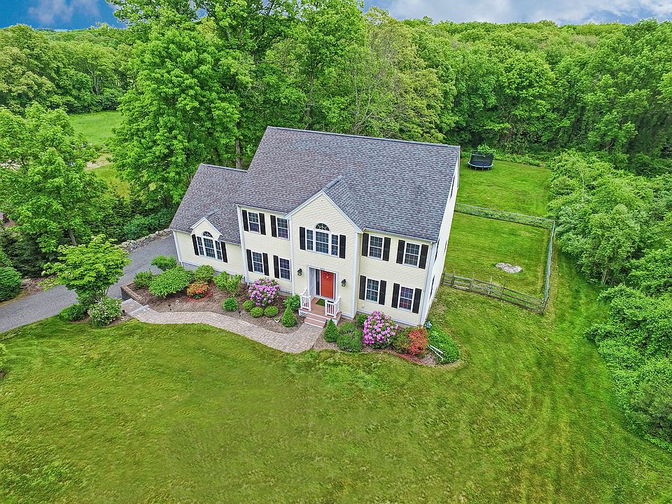 MOVE IN READY!!! Welcome home to this exquisite contemporary colonial offering an open floor plan, quality upgrades & a serene park-like setting! 1st floor features a spacious foyer open to large dining room & private office w/French doors. Beautiful cook's kitchen w/custom cabinetry, quartz counters, SS appliances, large center island, chalkboard wall & dining area. Off the hall is an updated powder room w/closet, pantry & laundry rm. The showpiece of this home is a huge Great Room perfect for every day living, entertaining & holiday gatherings! Second floor offers a fantastic master suite w/walk-in closet & updated bath w/double sinks & Jacuzzi. Three additional bedrooms, updated full bath & walk-up attic. Walk-out LL w/bonus room & mudroom. Storage galore! Deck & private acre lot. Great proximity to downtown, the rail trail, schools & Patoma Park with access to the lake across the street. Enjoy a turn-key home in a convenient location plus the best that country living offers today!