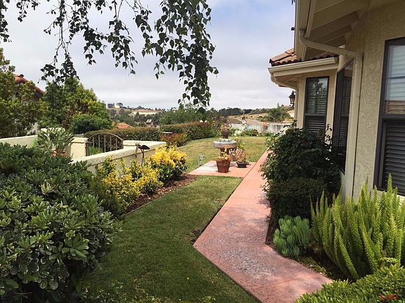 Absolutely gorgeous home resting on the hillside overlooking a spectacular panoramic view of the City, Dunes and Ocean, Amenities include, beautiful courtyard leading into the front entrance and wrapping around to the side yard,RV parking on side of house with storage building. Landscaping is breathtaking on entire property with water fountain. Entrance opens into living room and formal dining area, spacious kitchen with stainless steel appliances and green house window, family room has vaulted ceilings and fire place. Both dining and family rooms have a spectacular view. Large laundry room with counter tops and cabinets,Dual sink bathrooms with shower one with spa tub, two car garage with insulated roll up door/opener,attic space storage, storage cabinets, wash basin and water softener also has fire suppression sprinklers. Tile roof and french gutter drains, natural gas hook up for BBQ on back patio.Dual pane windows/treatments. This is an amazing home in walking distance to shopping.