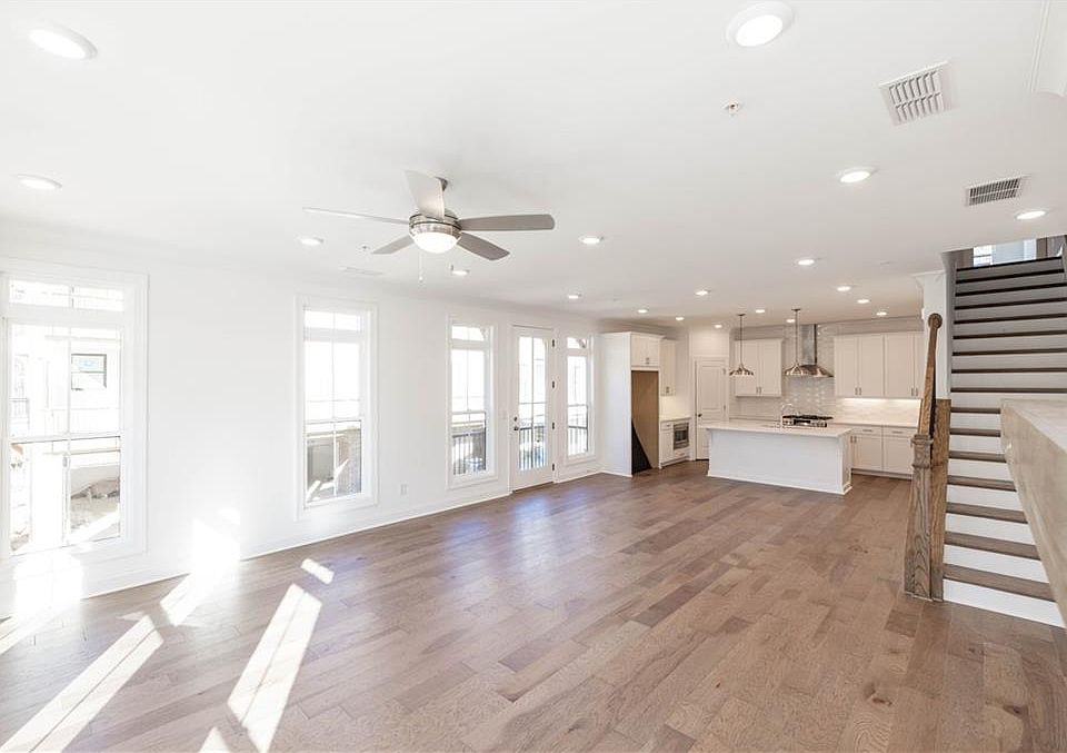 FALL INTO SAVINGS with $35K or 4.75% FIXED RATE when you use our Preferred Lender & close by end of November! This home is READY NOW! Do you want walkability to restaurants, shops & easy access to GA-400? Look no further! This is the perfect LOCATION! Come tour the Benton I, our beautiful, spacious 3 Bedroom / 2.5 Bath END UNIT. The Front Yard is fenced and comes with an irrigation system to keep your lawn looking beautiful throughout the summer months. As you approach the front entry, you are greeted with an amazing COVERED TERRACE and OUTDOOR BRICK FIREPLACE - the perfect space to gather with friends. As you enter the terrace level through the 4 lite glass door you find a spacious Bonus Room / Flex / Media Room with hard surface flooring. The large slider door opens to the patio, extending the space for easy entertaining. Hardwood stair treads takes you to the main floor Open Concept Kitchen, Dining and Family room. Our Warm Linen Design package creates a clean, neutral palette. The stunning kitchen has White Cabinets with 42" uppers, crown molding & soft close doors. The under cabinet lighting illuminates the Quartz Calacatta Prado Countertops while pendant lights hang above the large island with a stainless single bowl sink. GE Stainless Steel Energy Efficient Appliances, Gas Stove, Range Hood, Dishwasher and Built in Microwave are standard finishes. This END UNIT dining and family room has a tons of windows allowing natural light to flood the rooms. The family room features a cozy LINEAR FIREPLACE with stacked quartzite and a natural box beam mantel. Additionally, there is a side balcony that opens from the family room, adding a sophisticated design to the home. Tucked away behind the kitchen is a sunroom/office area - the perfect spot for reading or working from home. The sunroom door opens to a covered deck so you can always take a moment to step outside for a breath of fresh air. The upper level hosts all 3 bedrooms and 2 full baths. The primary suite features a tray ceiling, ceiling fan and 2 separate closets. The luxurious primary bath has a decked soaking tub and frameless tile shower. The dual vanity has plenty of storage for all your necessities. Down the hallway are 2 secondary bedrooms - both with access to an upper level deck. The 2 car garage comes equipped with an electric charging station and plenty of storage space. Virtual Tour of previously built Benton plan. [The Benton I]