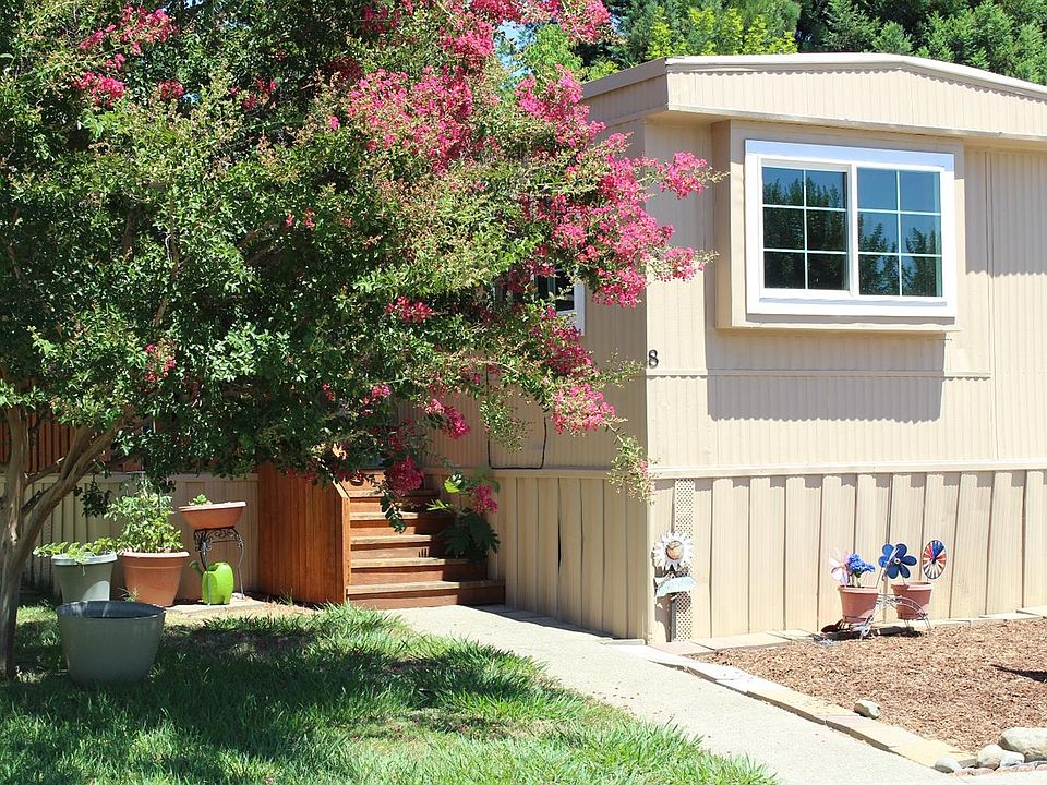 NOW AVAILABLE! This affordable 2-3 Bedroom/2 full Bath features New Flooring, Dual Pane Windows, Pest Inspection Clearance, and Home Warranty! Home is located within the highly sought after ALL-AGE Westwood Mobile Home Park Community and low Space Rent. Enjoy the outside space with the large wooded front porch and the enclosed back patio/Sunroom. The fertile soil is perfect for your vegetable, fruit and herb garden! It's all here, ready for you! Close to Hwy 50 and Shopping!