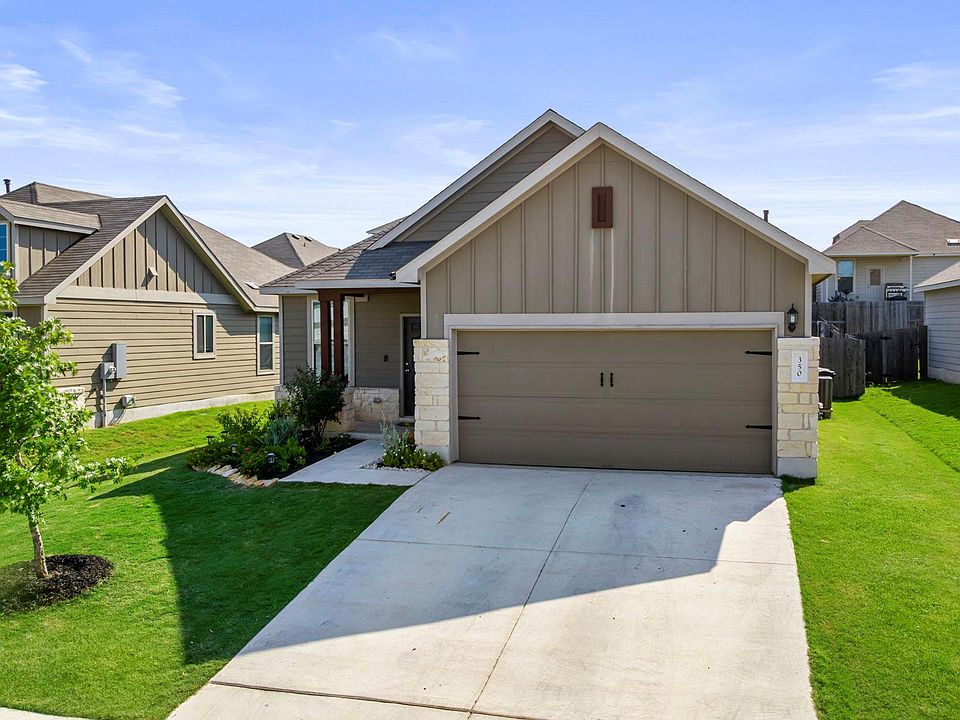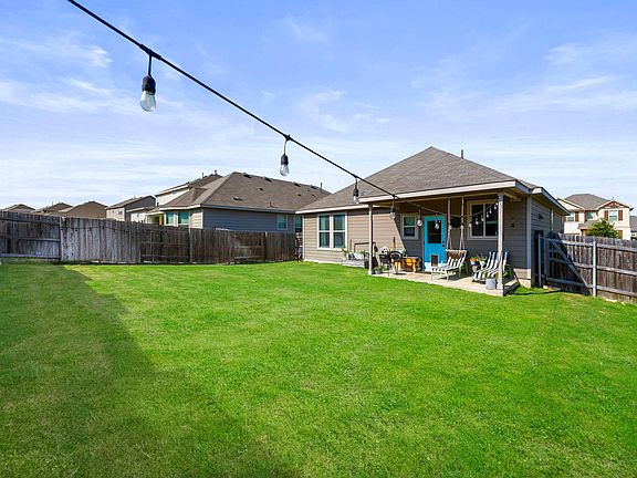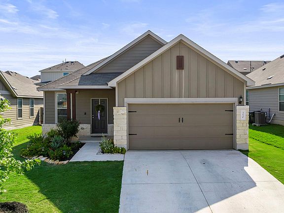Beautifully maintained single-story home in the sought-after Sunfield community! Features include an open-concept layout, granite countertops, stainless steel appliances, and a spacious kitchen island. The primary suite offers a walk-in closet and dual vanity bath. Enjoy the covered back patio and fenced yard. Perfect for relaxing or entertaining. Resort-style amenities include a lazy river, pools, parks, trails & more. Easy access to I-35, Buda, and Austin!