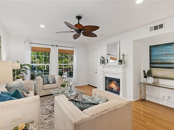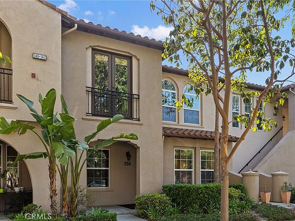 Welcome to 350 Quail Ridge. This rarely on the market, beautiful Ambridge Plan 4 boasts over 1900 square feet of living space with three bedrooms (including one on main floor) and an open concept floorplan. Enter and step into the spacious living, dining and kitchen areas. The living area includes large picture windows, charming fireplace and media niche. The gourmet kitchen offers granite counter tops, an abundance of cabinets, breakfast bar for extra seating, built in workstation and a full dining area. Plus, recessed lighting and bamboo wood flooring throughout. Head upstairs to the generous sized primary suite with walk-in closet and custom built-in organization system. The bath features dual sinks plus a separate vanity area, large soaking tub and separate shower. The additional upstairs bedroom includes a Juliet balcony and private bath. Additional perks include a full laundry room with sink, attached two car garage with built in cabinets for additional storage and work area - perfect for crafts and home projects. Resort like HOA amenities include pools, spas, parks, two gyms, tennis and sport courts. Just minutes to shopping, dining, entertainment and short drive to the beach. And, award winning Irvine schools!!