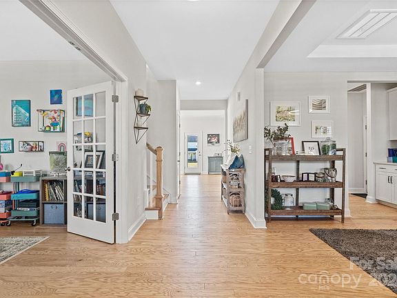 Welcome to the highly desirable Paddler’s Cove community! This spacious 5-bedroom, 3.5-bath home offers a thoughtfully designed floor plan, including a guest bedroom with a full bath on the main level. Upon entering, you'll find a private study with French doors and a formal dining room with a tray ceiling and butler’s pantry, perfect for entertaining. The gourmet kitchen is the centerpiece of the home, featuring an oversized island with seating, a 5-burner gas cooktop, quartz countertops, a farmhouse sink, and a walk-in pantry. The large family room is warm and inviting with a gas log fireplace and abundant natural light from custom-blinded windows. Upstairs, the extended primary suite offers a serene retreat with dual sinks, a soaking tub, a semi-frameless shower, and a spacious walk-in closet. For added convenience, the home includes a vehicle charging station. Enjoy the fenced backyard and covered patio, perfect for relaxing or hosting gatherings.