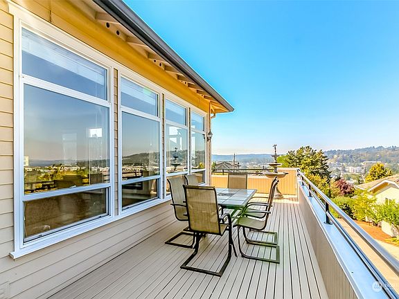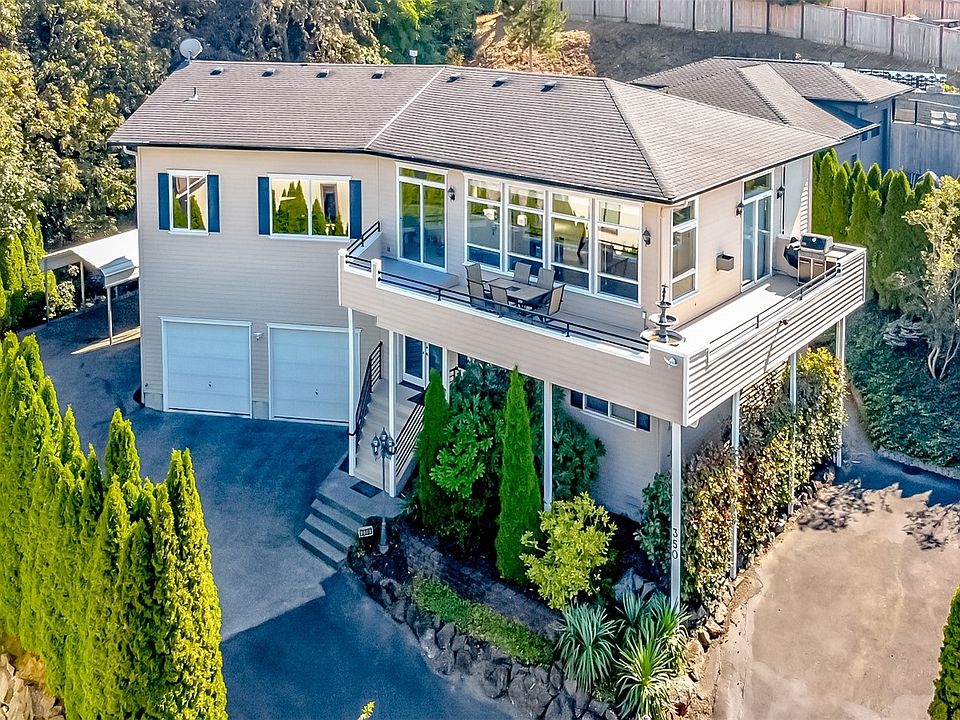 Custom home on Historic Renton Hill. Stunning 180 degree city, mountain and lake views, to enjoy loads of sunlight and gorgeous sunsets! Turn-key and move in ready, with new carpet and fresh paint. Featuring 10 foot ceilings with an open floor plan and extended dining area, designer kitchen, and large family room. Great for entertaining. You will love the wrap-around deck, dramatic entry with etched double glass doors, tile flooring, and beautiful winding brass railing staircase. Primary suite with fireplace, jetted soaking tub, and large walk-in closet. Oversized 2 car garage, carport, RV parking, shed. Secluded setting at end of a private drive. Close to freeway, shopping, buses, airport, hospital.