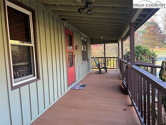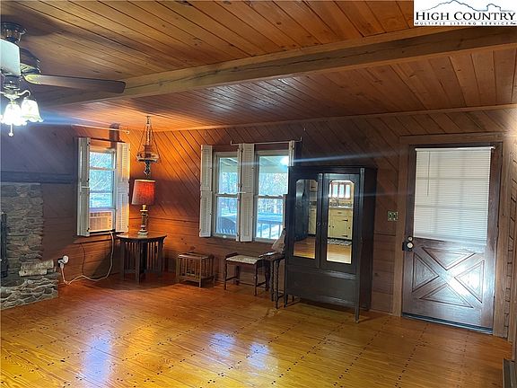 Cottage on a beautiful setting. Inside you will find lovely "Heart of Pine" pegged flooring, Open Beamed Ceiling with Tongue & Groove, and "Herring Bone" Tongue & Groove walls, Custom Shutters on the windows, not to mention a full basement that has been fully encapsulated and is ready to be whatever you want it to be. With an open floor plan the Native Stone Fireplace will be sure to keep you cozy. 1 Main bedroom with an additional room to be used as another bedroom, office, etc.... Sit back and relax on your Front Porch or out back on your screened in porch taking in the serenity of Mountain Living. Nicely landscaped yard. Close to Downtown West Jefferson and Boone.