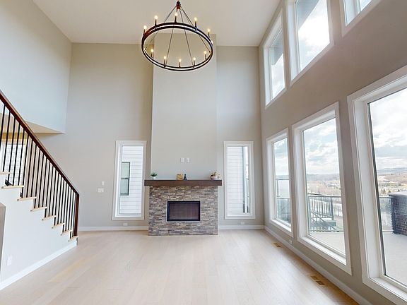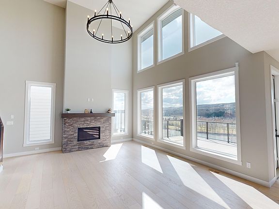 Backing onto green spaceMarble countertopsVaulted ceilingsOversized windowsFloor-to-ceiling stone fireplaceCustom built-insGas line for bbqs