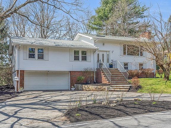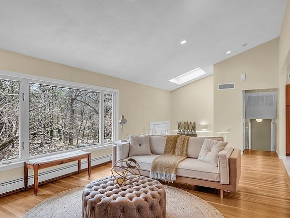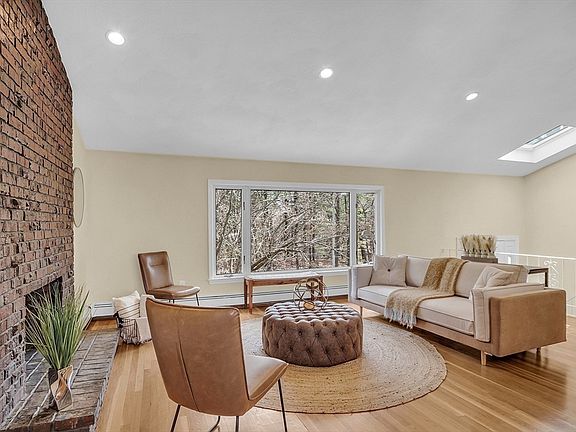 This stunning 3-bedroom/2.5-bath home blends indoor comfort and outdoor charm. The main floor is an open concept design with cathedral ceilings and a striking floor-to-ceiling fireplace. Large windows offer abundant light and impressive views of nature’s beauty. The kitchen has stainless-steel appliances and a large island with extra storage and seating, the ideal spot for gatherings. Sunset views from the dining room make dinners delightful. A multi-level layout separates the bedrooms from the living areas. There are three spacious bedrooms including a primary bedroom and bath with a jacuzzi tub, plus ample closet space for easy organization. The flexible family room can also be a potential fourth bedroom or a space for your in-laws/extended family. The yard, complete with deck, is perfect for BBQs and outdoor fun. Set across from the Fells, endless outdoor activities await. Close to downtown Winchester with an easy commute to Boston, this home is a standout.
