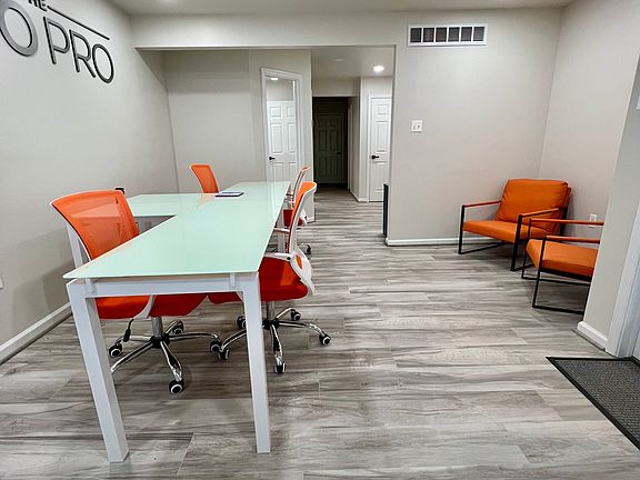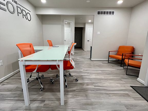 The space includes two rooms which offer tons of versatility. Both rooms are large enough to accommodate a conference table which allows for large groups to meet together or they can be used to accommodate at least four desks.