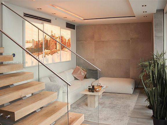 Spectacular partly furnished custom-designed 2BR/2BA two-story residence with Miami River views. Flooded with natural light, this fully remodeled home features an Italian marble kitchen with Miele appliances, elegant wood/glass staircase, and modern bathrooms. Smart home automation includes LUTRON motorized shades, Nest thermostat, built-in speakers, and LED lighting. Two elongated balconies with river and Brickell views. Private elevator with limited access per floor + assigned parking on the same level. Building offers resort-style amenities including pool, gym, spa, party room and movie room. Prime location - just a 5-minute walk to Brickell City Centre with shopping, dining and entertainment. Available for annual lease (6-month term considered).