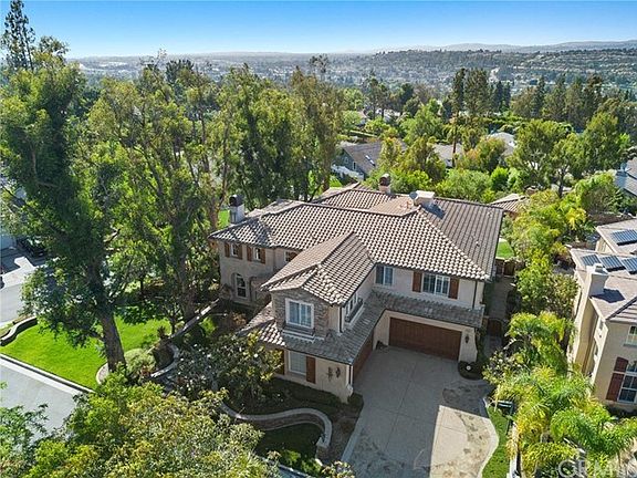 Get ready to view a Pinterest backyard that's difficult to dream up! Located in one of the most treasured neighborhoods in Anaheim Hills, this stunning semi-custom estate has one of the best floor plans for the most discriminating buyer. Dramatic entry with two story ceilings and windows and grand sweeping wrought iron staircase creates a stunning first impression. Downstairs encompasses an executive office off the main entrance and a rare junior suite with en-suite bathroom and walk in closet. Great room-size family room with full bar, built in entertainment center and fireplace. Enormous chef's kitchen open to the family room and resort grounds with high end stainless appliances, Sub Zero refrigerator/freezer, large prep island, abundance of cabinetry, walk-in pantry and breakfast nook fireplace. The lower level is finished off with a sizable laundry room and two separate two-car garages. Upstairs is an enormous loft and game room that was the 5th bedroom with a full bath. Two other suite-size rooms connect with a large Jack-n-Jill bath. The owner's suite continues the sizable theme with retreat, fireplace, incredible city lights views and lavish master bath with Hollywood-size walk-in closet. The yard your friends will never want to leave sits on a ½ acre surrounded by nature and designed for ultimate entertainment with outdoor kitchen, infinity edge diving pool, sprawling lawn and separate outdoor pavilion with real wood burning fireplace. Get ready to fall in love!