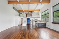 Soaring ceilingsAiry second-floor loftExposed brick wallsUnique architectural detailsHardwood floorsOversized factory-style windowsCenter island