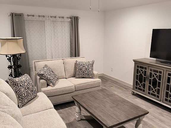 Why stay in a hotel when your family or co-workers can rent a beautiful fully furnished 3 bedroom 2 bath home in a quiet neighborhood with fenced backyard in Bridge City, The corporate rental includes all linens, towels, kitchen ware, and everything needed for immediate move in. Full size appliances, a large breakfast bar with beautiful counter tops, stainless steel appliances, corner pantry and opens to the living area. Primary suite features double vanity and a spacious walk-in closet. The 2 guest bedrooms are furnished with bedroom suites. Fenced in backyard features a covered patio and storage building for your needs.