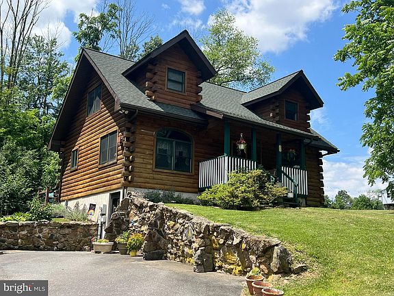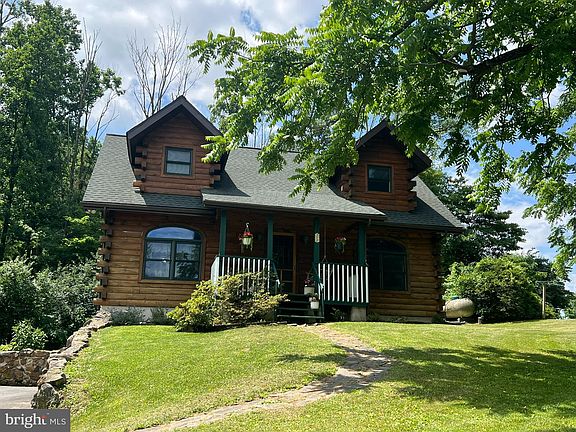 This property is being offered for sale at auction on Thursday, August 8th @ 5:00 PM. List price is the suggested opening bid only and is not indicative of the final sale price. OPEN HOUSE: Saturday, July 20 & 27 and August 3 (1-3 pm) or by apt. TERMS: 10% down day of sale; settlement within 45 days of sale. Terms by: Franklin R. Ross, Jr & Susan M. Ross. Beautifully situated log Cape Cod home w/detached 2 car garage & bank barn on 2.21 acres. The home contains approx. 1,932 SF and features gorgeous knotty pine floors & ceiling fans throughout most of the home, accented by circle top windows in a palette of neutral colors & wood. The front covered porch leads into a great room w/open loft which includes a living room w/propane stove, kitchen/dining area w/granite countertops, tiled backsplash, bar seating, gas range, D/W & refrigerator; sun room w/wood stove; master bedroom w/walk-in closet; and master bath. The sun room leads to a composite deck with a hot tub & a patio area for dining & grilling. The second floor contains a loft; 2 more bedrooms; and another full bath. The lower level has a finished rec room w/outside exit and a large storage area w/washer & dryer. The home has propane baseboard heat, on site well & septic. The property also contains a 26 x 24 two-car garage w/electric openers & a 9,000 lb. 2 post lift and an attached 10 x 24 carport; 1813 circa 30 x 50 stone & frame bank barn w/open stables on the lower level equipment storage on the upper level. The property features spacious lawns accented with stone walls, perennial & water gardens, mature shade trees and a paved driveway with extra parking. NOTE: This one owner property is surrounded by fields & woods and is conveniently located within 5 minutes of restaurants, gas stations, and grocery stores and only 6 minutes to PA Turnpike.