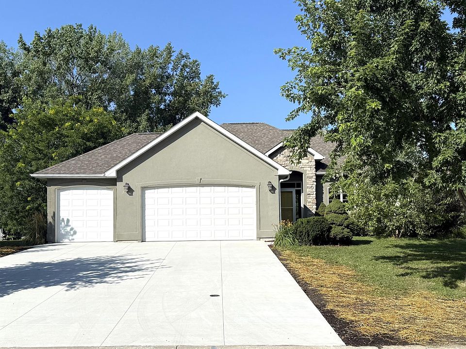 Beautifully designed 5 bedroom, 3 bath home with arched ceilings, columns and cherry cabinetry throughout. Enjoy hardwood floors on the main level, slate tile in the entry and decorative lighted tray ceilings in the kitchen and primary suite. Main floor offers two spacious living areas. One with a gas fireplace and custom built-in bookshelves. The kitchen/dining room combo offers granite countertops, tile backsplash, SS appliances and is open to the living room area. Convenient main floor laundry hook up with additionial laundry room in the lower level. The walk out basement includes a large family room with several built ins, ideal for entertaining. Built in closet systems throughout provide ample organized storage. Exterior features include heated 3 car garage and newly poured driveway. Backyard has renovated deck, patio area and large yard space! Great space to call home!