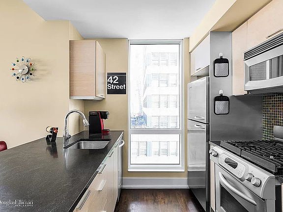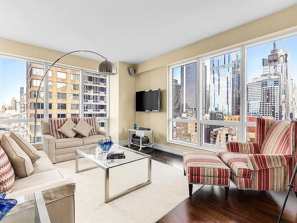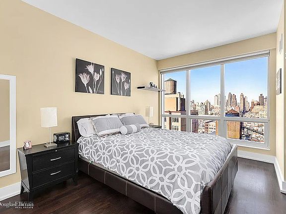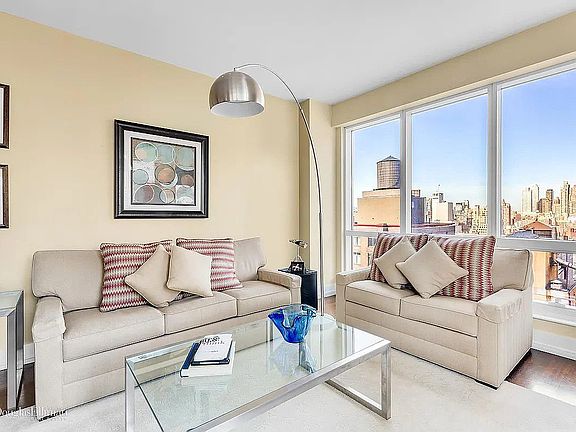 This corner unit offers spectacular views and an open layout flooded with natural light. The corner layout features spacious entertainment living room, dining areas and one large bedroom provide ample space for a work-from-home area. The apartment fully furnished with couch, TV stand, dinning sets, working station, King size bed and nightstand, bookshelf, Internet is available to connect... The apartment also comes with floor-to-ceiling windows, hardwood floors, a state-of-the-art fully equipped gourmet kitchen a lot of closet spaces. This is a full-service luxury condominium that offers a concierge, maid service, dry cleaning, laundry room and onsite parking. Residents also have access to the building's 3 floors of amenities situated on the 30th floor with spectacular views and include an 8200 square foot fitness room, pool, sun decks, sauna, sprawling lounge areas and entertaining rooms. It is conveniently located at the crossroads of Manhattan's commute. Smoking allowed:No