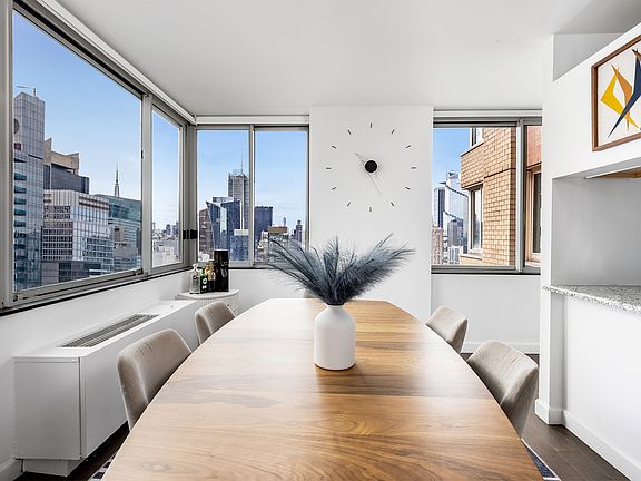 High in the sky, Penthouse 3A offers from its 38th floor location stunning views to the South and East which include open views of the Manhattan Skyline, Hudson Yards and the Hudson River. As you enter, you begin to catch sight of the city that lies beyond. From every room in this split two bedroom, two-and-half bath apartment you will set your eyes on high in the sky views. The pass-through kitchen is in front of its very own separate dining room with corner windows offering spectacular city views. Wide plank maple wood floors throughout. Both bedrooms offer comfortable dimensions, en-suite bathrooms and excellent closet space with customized shelving. Just off the living room there is a convenient powder room. Washer and dryer are included in this 1,168 square foot home. There are only 4 units on this floor. The building has a live in Resident Manager and the amenities include 24-hour concierge, doorman, eight laundry rooms, five roof decks with beautiful open views, a "Residents only" courtyard, residents lounge and conference room. The garage on the premises is available to residents for a preferred fee.