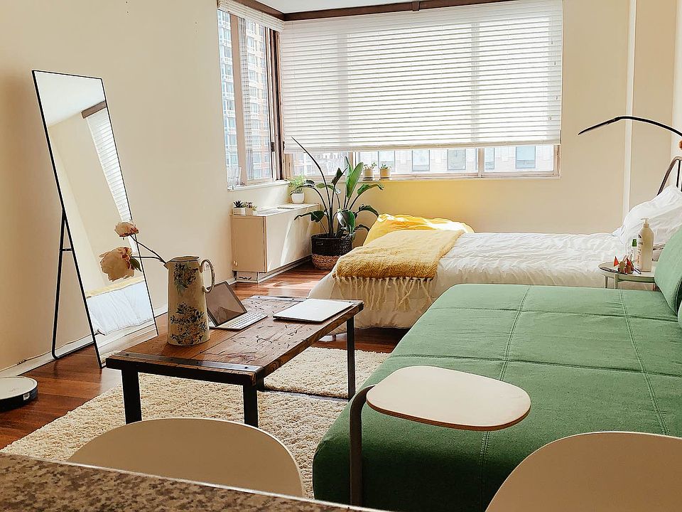 Enjoy a bright and stylish studio facing north and east with sweeping Manhattan views and abundant sunlight.