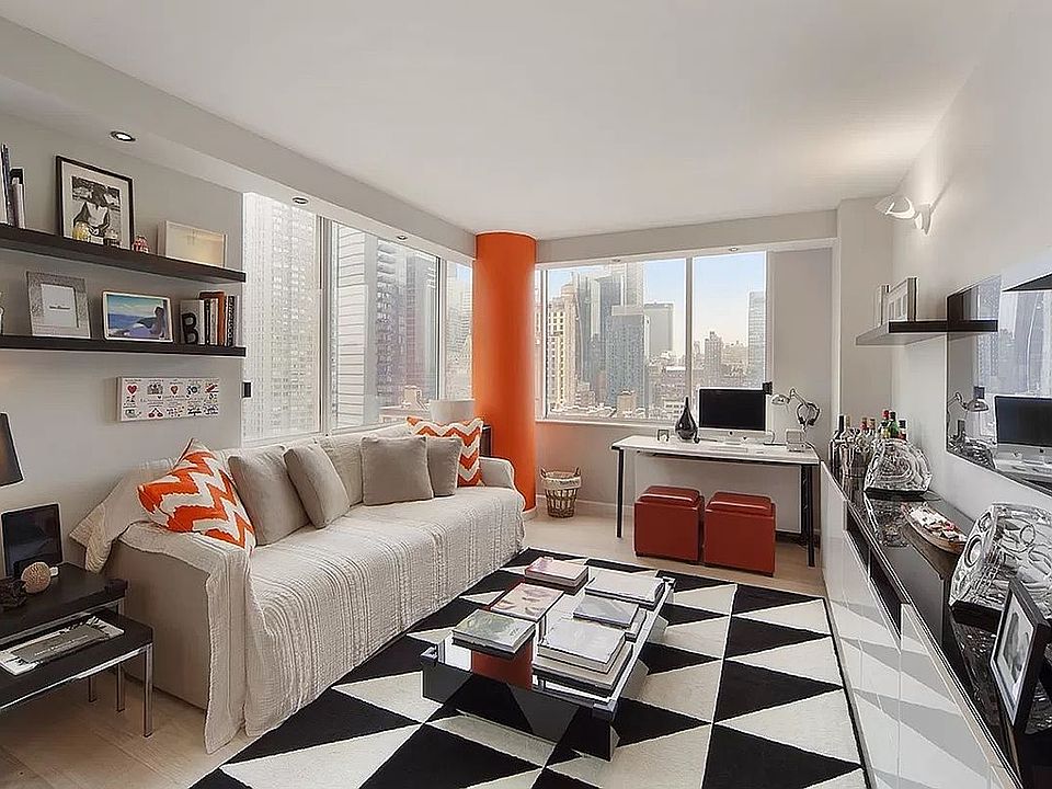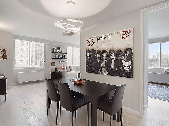 Welcome to your exquisite new home at 350 West 50th Street, Residence 20B, where luxury meets convenience in the heart of Midtown West. This stunning two-bedroom, two-bathroom condo spans 1,091 square feet and is perched on the 20th floor, offering breathtaking city, downtown, river, and panoramic skyline views. With excellent southern and eastern exposures, this corner unit is bathed in natural light, creating a warm and inviting ambiance. Step inside to discover a layout featuring a thoughtfully designed open concept living area with dining space, ideal space for entertaining. The modern kitchen boasts sleek, high-end appliances, including a dishwasher, and seamlessly flows into the living room. Rich hardwood Ash Nuvolo Rustica XL floors run throughout, and the unit boasts customized window treatments, enhancing both aesthetics and comfort. Both elegant bathrooms are luxurious. Enjoy the ease of in-unit laundry with a washer and dryer included, and year-round comfort with thru-wall cooling. The Residences at Worldwide Plaza offers a suite of premier amenities, including full-time concierge and doorman services and a smoke-free environment. Unwind in one of the four roof decks, immerse yourself in the tranquility of the courtyard, or explore the vibrant neighborhood with ease. Conveniently located in the building is David Barton's 40,000 sq ft. TMPL with the latest technology, saltwater pool and sauna. Monthly and annual memberships available. Located just moments away from iconic attractions such as Central Park, Lincoln Center, Hudson River Park, Rockefeller Center, and Radio City Music Hall, this condo is a gateway to New York City's finest. Commute effortlessly with nearby access to C, E, 1, Q, N, and R subway lines and cross-town buses. This exceptional residence is eager to become your new home! Don't miss out on the opportunity to call it yours. Schedule a showing today and experience the epitome of NYC living.