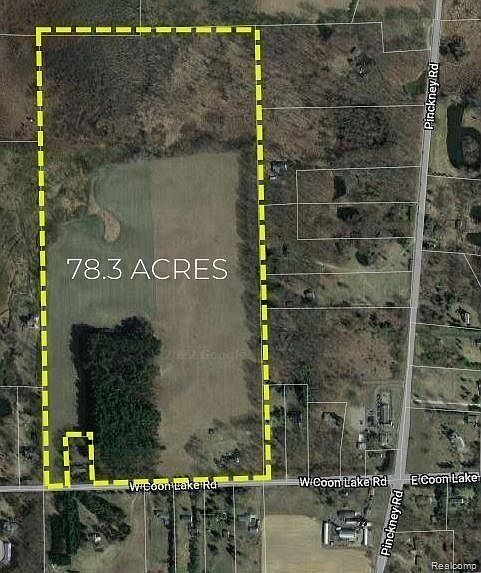 Residential development parcel with rolling topography, favorable soil conditions for 1 acre lots, and located in an extremely desirable location. Parcel is just off D19, west on Coon Lake Road, and just about 3 miles south of the major I-96 freeway exit for D-19 and downtown Howell. South of Marion Oaks Community, which is selling rapidly at an average of $500k with 1/4 acre lots. Rolling topo with abundant walk out sites, bounded by mature tree lines for natural buffers and no wetlands. Prime development opportunity! Original farmhouse on the property can be rehabbed and split with an acre to increase return.